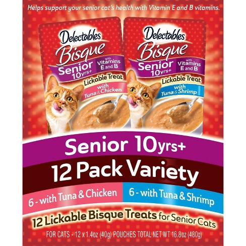 Hartz Delectables Bisque Senior Tuna Chicken Shrimp Cat Treats Variety Pack 1 4oz 12ct Target